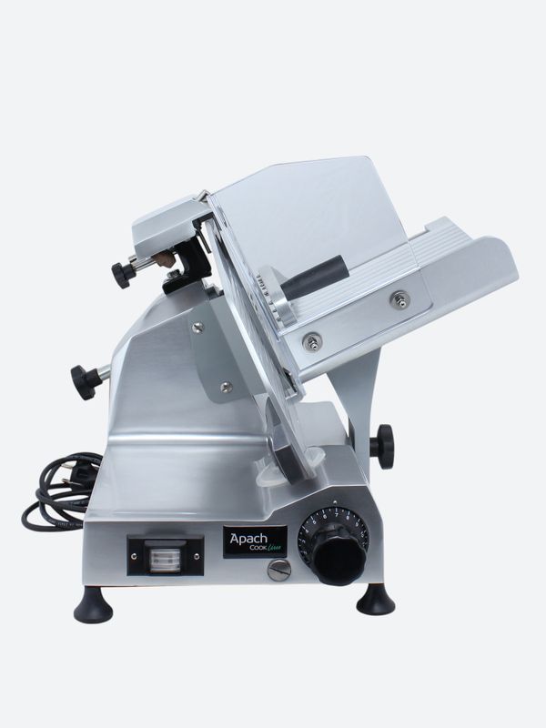 Слайсер Apach Cook Line ASL275 предназначен для нарезки различных продуктов на предприятиях общественного питания и торговли. Модель оснащена вентилируемым мотором и встроенным затачивающим устройством. Корпус выполнен из литого анодированного алюминиевого сплава, нож - из кованой углеродистой стали 100Cr6.