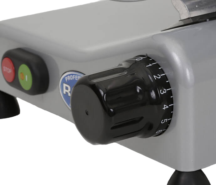 Слайсер RGV Lusso 22 GS CEV применяется для тонкой нарезки твердых сыров, овощей, фруктов и других видов продуктов на предприятиях общественного питания, торговли и пищевых производствах. Модель оборудована съемником для снятия крышки диска и увеличенной ручкой держателя продукта. Материал корпуса - лакированный алюминий, деталей - пластик.