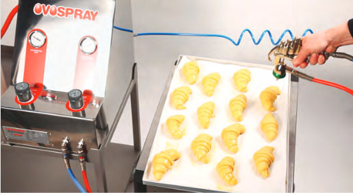 Принцип работы оборудования прост: белок, гомогенизированное яйцо или жидкое масло под давлением подается из контейнера в пистолет. Сжатый воздух и продукт для распыления одновременно смешиваются в диспенсере пистолета и распыляются. Давление воздуха и жидкости можно регулировать отдельно для достижения лучшего результата.