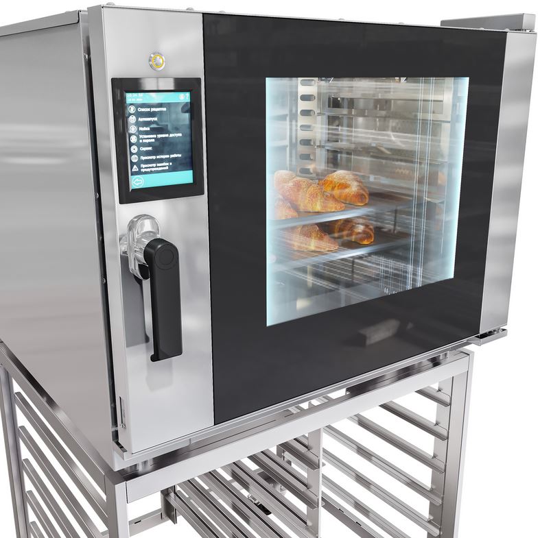 Конвекционная печь Abat КЭП-5ПП используется на предприятиях общественного питания, торговли и пищевых производствах для выпекания хлебобулочных и кондитерских изделий, приготовления и разогрева различных блюд. Модель оснащена Touch Screen управлением, автоматической мойкой и функцией шибера. Материал двери - тройное стекло,