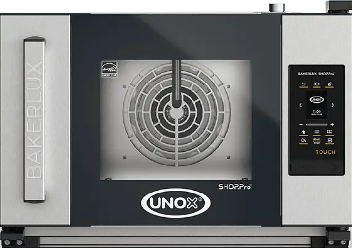 Печь конвекционная UNOX XEFR-03HS-ETLV Stefania серии BAKERLUX SHOP.Pro используется для приготовления широкого спектра блюд, выпечки хлебобулочных и кондитерских изделий на предприятиях общественного питания, торговли и пищевых производствах. Модель оснащена Touch Screen управлением, дисплеем 2.4", светодиодной  подсветкой и направляющими. Материал камеры - высококачественная нержавеющая сталь AISI 304, материал двери - двойное стекло, материал направляющих - хромированная сталь.