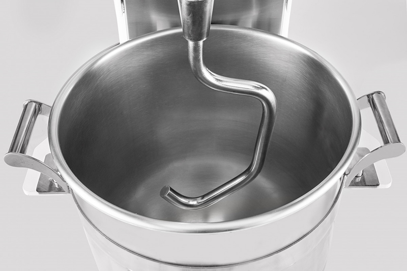 В комплект поставки входят дежа, венчик с тонкими прутьями, лопатка и крюк.