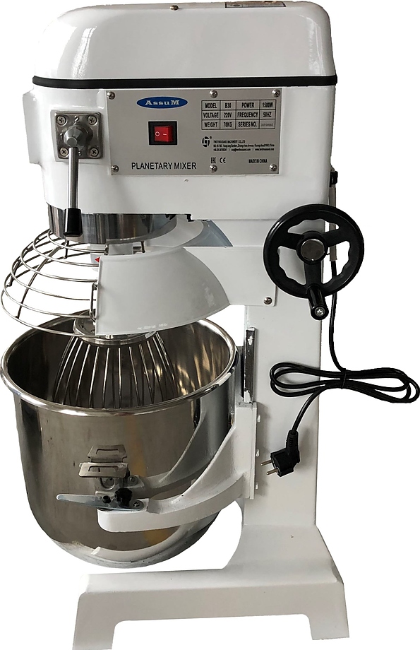 Планетарный миксер Assum B30 предназначен для замеса различного вида теста жидкой консистенции, в том числе белкового, заварного, дрожжевого, бисквитного, а также для приготовления пюре, майонеза, различных соусов, взбитых сливок на предприятиях общественного питания, торговли и пищевых производствах. Миксер оснащен съемной дежой. Материал всех элементов, контактирующих с пищевой продукцией - нержавеющая сталь.