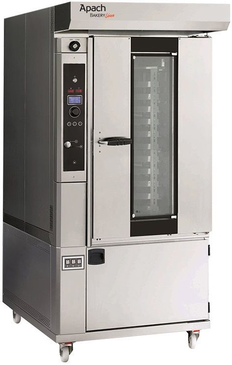 Печь ротационная Apach Bakery Line C46EP TSTA серии C используется на предприятиях общественного питания, торговли и пищевых производствах для выпечки хлебобулочных и кондитерских изделий. Модель оснащена TOUCH SCREEN управлением, системой паровых импульсов, автоматическим клапаном пароудаления, вращением при помощи крюка, стандартным и пониженным обдувом, высокопроизводительным парогенератором, козырьком с вытяжкой пара, защитными уплотнителями и колесиками. Материал внешнего и внутреннего корпуса - высококачественная нержавеющая сталь, материал теплоизоляции - минеральная вата.