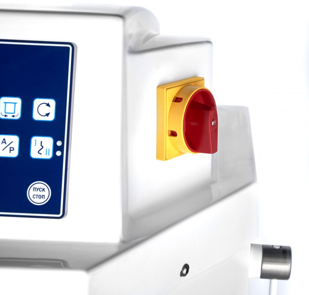 Корпус выполнен из высококачественной конструкционной стали с полимерным покрытием, металлические детали машины, контактирующие с продуктом во время замеса (спираль, дежа, нож) - из нержавеющей стали AISI 304.