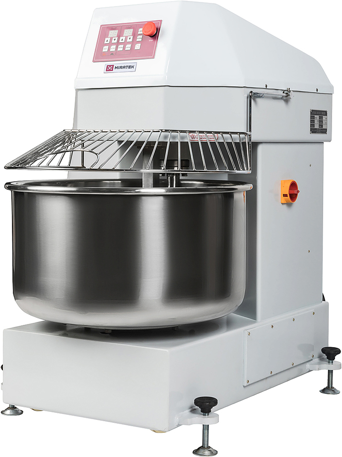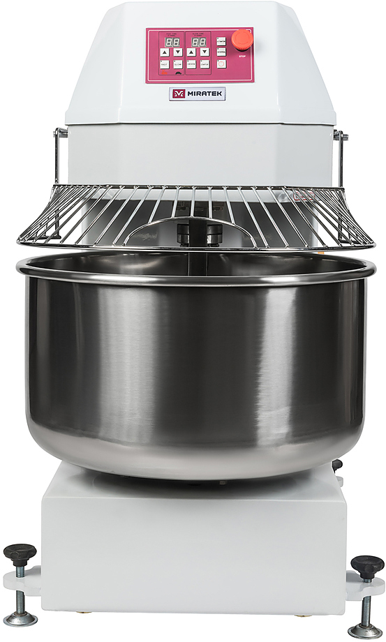 Спиральный тестомес Miratek PX-60 используется на предприятиях общественного питания, торговли и пищевых производствах для замешивания теста с различной консистенцией перед выпечкой хлебобулочных и кондитерских изделий. Модель оснащена цифровым пультом управления, автоотключением при поднятии решетки, таймерами и регулируемыми винтовыми ножками. Материал корпуса - углеродистая сталь, покрытая молотковой эмалью, материал дежи - высококачественная нержавеющая сталь AISI 304.