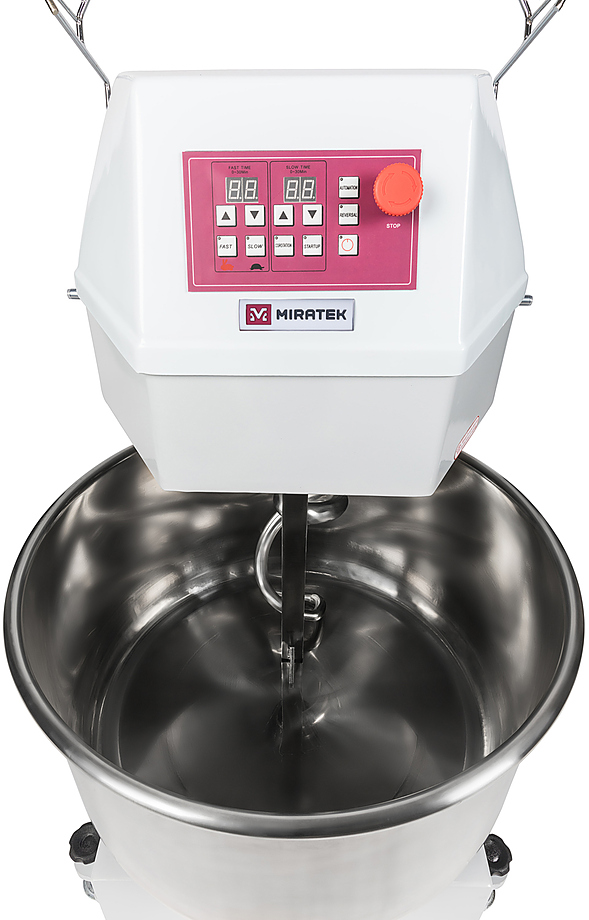 - Месильный орган, состоящий из вращающейся спирали и неподвижного отсекателя, способствует быстрому и качественному замесу