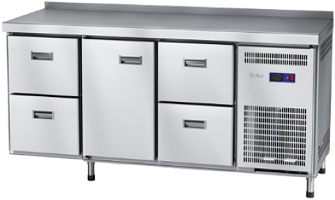 Холодильный стол Abat СХС-60-02 используется на предприятиях общественного питания и торговли для охлаждения и кратковременного хранения продуктов питания и напитков. Рабочая поверхность предназначена для раскатки теста и обработки ингредиентов перед приготовлением различных блюд. В модели установлена неохлаждаемая рабочая поверхность, полки-решетки, распашная дверца с магнитной вставкой, ящики и регулируемые по высоте ножки. Материал корпуса - нержавеющая сталь AISI 202, материал изоляции - пенополиуретан.