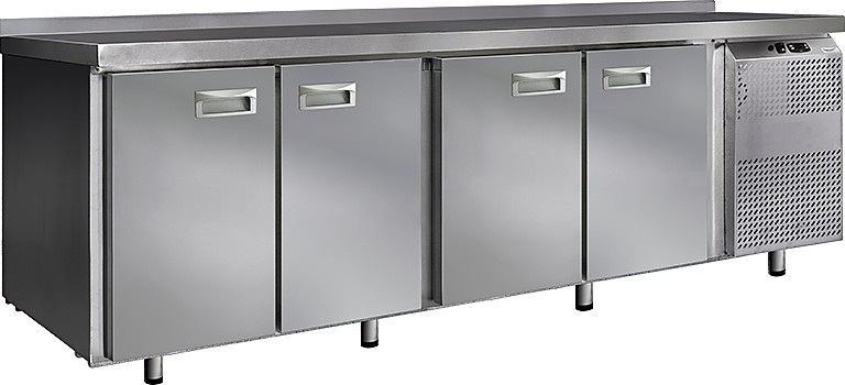 Холодильный стол Finist СХС-600-4 используется на предприятиях общественного питания, торговли и пищевых производствах для хранения и обработки полуфабрикатов из мяса и рыбы, заготовок для салата, охлажденных напитков и прочих пищевых продуктов. Управление при помощи кнопочной панели управления, оснащенной цифровым дисплеем. 4 холодильные камеры с распашными дверцами, агрегатный отсек располагается сбоку. Стол установлен на ножки с подпятниками. Материал корпуса - нержавеющая сталь.