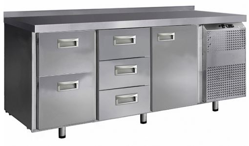 Холодильный стол Finist СХС-700-1/5 используется на предприятиях общественного питания, торговли и пищевых производствах для хранения и обработки полуфабрикатов из мяса и рыбы, заготовок для салата, охлажденных напитков и прочих пищевых продуктов. Управление при помощи кнопочной панели управления, оснащенной цифровым дисплеем. Холодильная камера с распашной дверцей, 5 выдвижных ящиков, агрегатный отсек располагается сбоку. Стол установлен на ножки с подпятниками. Материал корпуса - нержавеющая сталь.