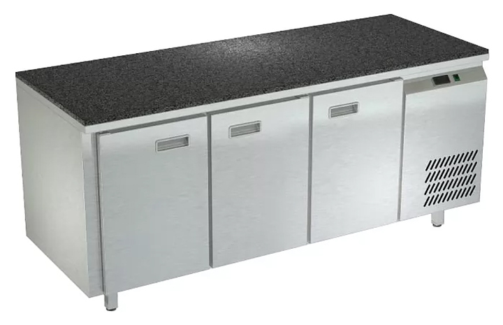 Холодильный стол Техно-ТТ СПБ/О-321/30-1807 предназначается для раскатки теста, обработки, охлаждения и кратковременного хранения продуктов и напитков на предприятиях общественного питания, торговли и пищевых производствах. Секции оснащены направляющими и ящиками с доводчиками. Материал корпуса - нержавеющая сталь AISI 430, материал столешницы - гранит (толщина 20 мм), материал задней панели и дна - оцинкованная сталь.