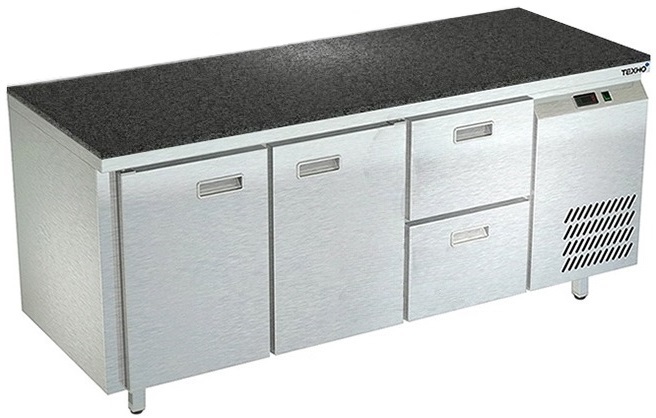 Холодильный стол Техно-ТТ СПБ/О-322/22-1806 предназначается для раскатки теста, обработки, охлаждения и кратковременного хранения продуктов и напитков на предприятиях общественного питания, торговли и пищевых производствах. Секции оснащены направляющими и ящиками с доводчиками. Материал корпуса - нержавеющая сталь AISI 430, материал столешницы - гранит (толщина 20 мм), материал задней панели и дна - оцинкованная сталь.