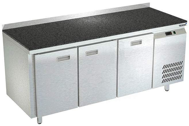 Холодильный стол Техно-ТТ СПБ/О-422/21-1807 предназначается для раскатки теста, обработки, охлаждения и кратковременного хранения продуктов и напитков на предприятиях общественного питания, торговли и пищевых производствах. Секции оснащены направляющими и ящиками с доводчиками. Материал корпуса - нержавеющая сталь AISI 430, материал столешницы - гранит (толщина 20 мм), материал задней панели и дна - оцинкованная сталь.