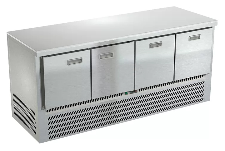 Холодильный стол Техно-ТТ СПН/О-522/22-1406 предназначается для раскатки теста, обработки, охлаждения и кратковременного хранения продуктов и напитков на предприятиях общественного питания, торговли и пищевых производствах. Секции оснащены направляющими и ящиками с доводчиками. Материал корпуса - нержавеющая сталь AISI 430, материал столешницы - полипропилен (толщина 20 мм), материал задней панели и дна - оцинкованная сталь.