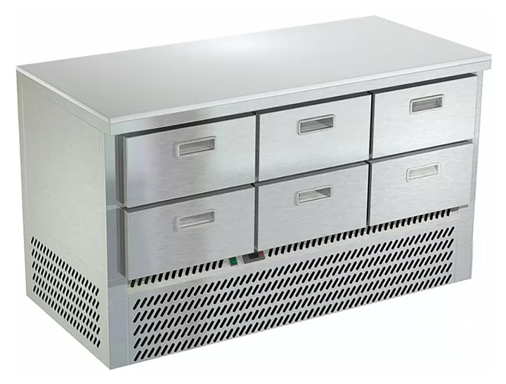 Холодильный стол Техно-ТТ СПН/О-523/06-1406 предназначается для раскатки теста, обработки, охлаждения и кратковременного хранения продуктов и напитков на предприятиях общественного питания, торговли и пищевых производствах. Секции оснащены направляющими и ящиками с доводчиками. Материал корпуса - нержавеющая сталь AISI 430, материал столешницы - полипропилен (толщина 20 мм), материал задней панели и дна - оцинкованная сталь.