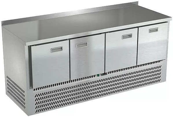 Холодильный стол Техно-ТТ СПН/О-222/31-1906 предназначается для раскатки теста, обработки, охлаждения и кратковременного хранения продуктов и напитков на предприятиях общественного питания, торговли и пищевых производствах. Секции оснащены направляющими и ящиками с доводчиками. Материал корпуса и столешницы - нержавеющая сталь AISI 430, материал задней панели и дна - оцинкованная сталь.