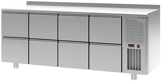 Холодильный стол POLAIR TM4GN-2222-G серии Grande Cubico используется на предприятиях общественного питания, торговли и пищевых производствах для хранения продуктов и обработки ингредиентов. Модель оснащена электронным управлением, терморегулятором, динамическим охлаждением, автоматической оттайкой, внутренней подсветкой и регулируемыми ножками. Материал столешницы и корпуса - высококачественная нержавеющая сталь, материал теплоизоляции - пенополиуретан.