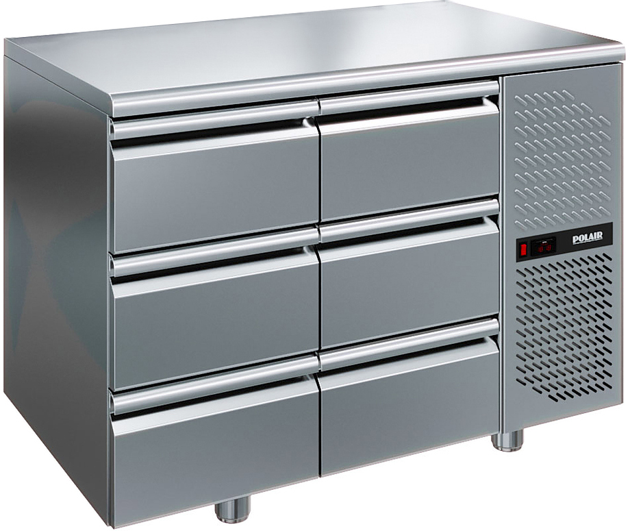Холодильный стол POLAIR TM2GN‑33‑G серии Grande Cubico используется на предприятиях общественного питания, торговли и пищевых производствах для хранения продуктов и обработки ингредиентов. Модель оснащена электронным управлением, терморегулятором, двухуровневым модульным агрегатом, автоматической оттайкой, внутренней подсветкой и регулируемыми ножками. Материал цельнозаливного корпуса и столешницы - высококачественная нержавеющая сталь, материал теплоизоляции - пенополиуретан.