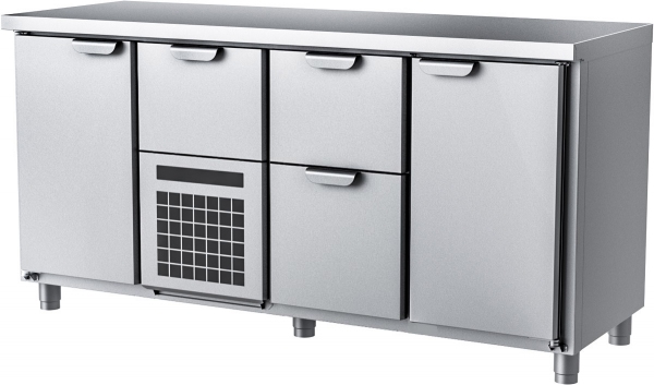 Холодильный стол HappyChef TC GH 1-CBR-2-1 используется на предприятиях общественного питания, торговли и пищевых производствах для хранения и обработки продуктов питания в охлажденном виде. Модель оснащена быстросъемными модулями, моющимся фильтром и регулируемыми ножками. Материал корпуса - высококачественная нержавеющая сталь AISI 430, материал столешницы - высококачественная нержавеющая сталь AISI 304 (толщина 2 мм).