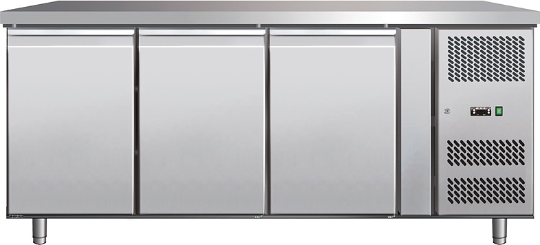 Холодильный стол Koreco GN/3100TN используется на предприятиях общественного питания, торговли и пищевых производствах для охлаждения и кратковременного хранения различных блюд, напитков и продуктов, а также для раскатки теста и обработки ингредиентов. Модель оснащена электронным контроллером, встроенным холодильным агрегатом и регулируемыми ножками. Материал корпуса - высококачественная нержавеющая сталь AISI 201, материал полок - металл с полимерным покрытием.