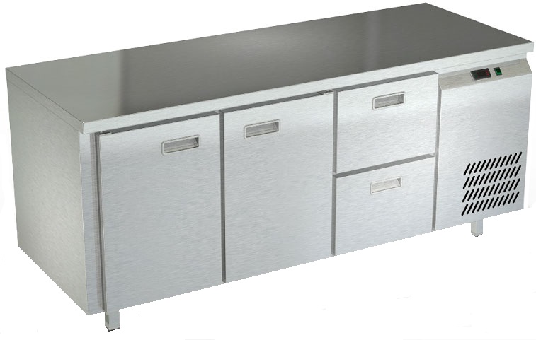 Холодильный стол Техно-ТТ СПБ/О-122/22-1806 предназначен для раскатки теста, обработки, охлаждения и кратковременного хранения продуктов и напитков на предприятиях общественного питания и торговли. Модель оснащена компрессором АСС (Италия), каждая секция - направляющими и сетчатой полкой, двери и ящики - доводчиками. Корпус выполнен из нержавеющей стали, задняя стенка - из оцинкованной стали.