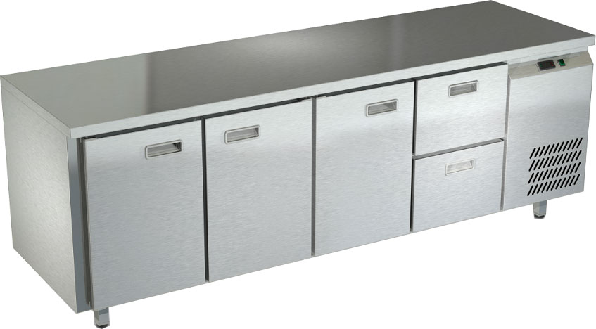 Холодильный стол Техно-ТТ СПБ/О-122/32-2207 предназначен для раскатки теста, обработки, охлаждения и кратковременного хранения продуктов и напитков на предприятиях общественного питания и торговли. Модель оснащена компрессором АСС (Италия), каждая секция - направляющими и сетчатой полкой, двери и ящики - доводчиками. Корпус выполнен из нержавеющей стали, задняя стенка - из оцинкованной стали.
