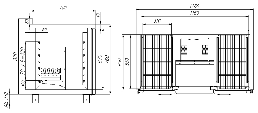 Холодильный стол Carboma T70 M2-1-G 9006 (2GNG/NT 11) предназначен для раскатки теста, обработки ингредиентов для приготовления блюд, охлаждения и кратковременного хранения скоропортящихся продуктов и напитков на предприятиях общественного питания и торговли. Модель оснащена дверью с доводчиком и регулируемыми по высоте ножками высотой от 90 до 110 мм. Цельнозаливной корпус выполнен из оцинкованной стали толщиной 50 мм, столешница - из нержавеющей стали, двери - из стекла.