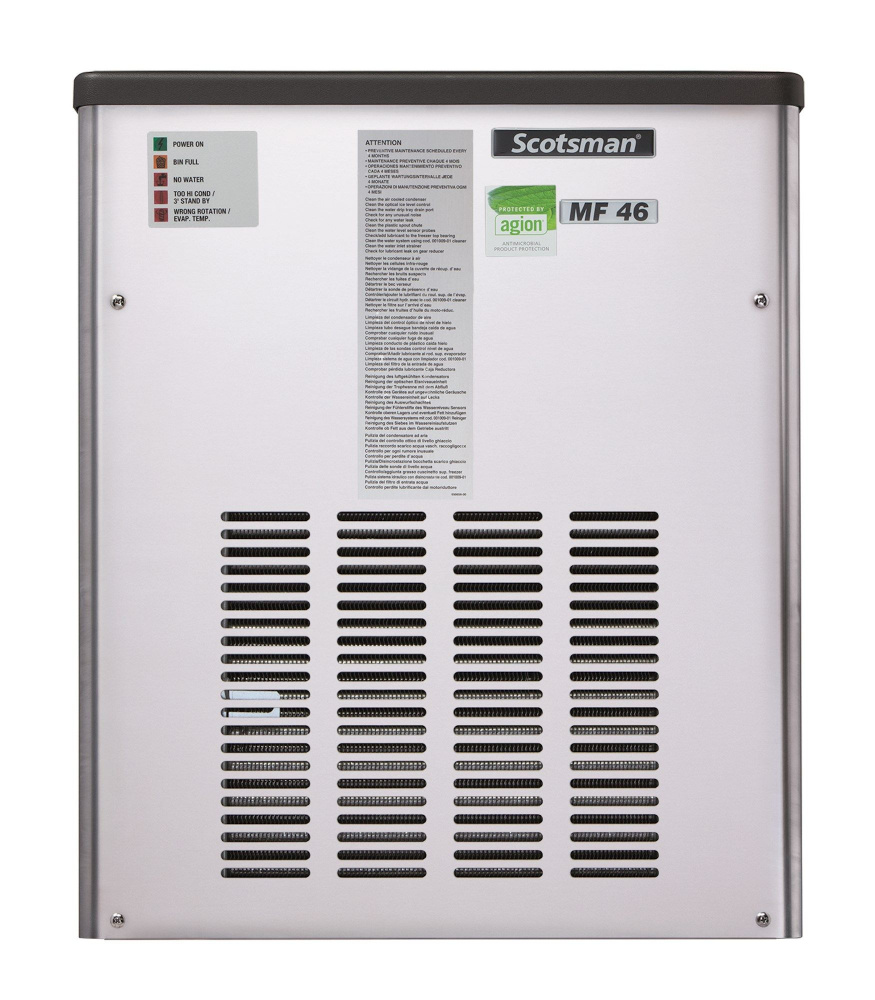 Льдогенератор SCOTSMAN (FRIMONT) MF 46 WS OX с системой дезинфекции XSafe используется для производства гранулированного льда на предприятиях общественного питания и торговли. Благодаря технологии AgION™ все детали прибора, изготовленные из пластика, становятся устойчивыми к возникновению и росту бактерий, тем самым повышая санитарную безопасность.