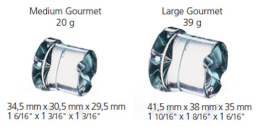 Лед цилиндрической формы "гурмэ" используется для охлаждения алкогольных и безалкогольных напитков, а также для приготовления коктейлей в первоклассных гостиницах, изысканных ресторанах и элитных барах. Каждый кубик представляет собой настоящее произведение искусства: кристально прозрачный, идеальной формы, твердый и долго не тающий лёд, по форме напоминающий наперсток.