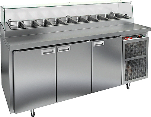 Охлаждаемый стол HICOLD PZ1-111/GN используется на предприятиях общественного питания, торговли и пищевых производствах для кратковременного хранения продуктов питания и напитков, раскатки теста и обработки ингредиентов перед приготовлением пиццы. Модель оснащена распашными дверцами, электронной панелью управления, автоматической оттайкой и регулируемыми ножками. Материал корпуса и столешницы - высококачественная нержавеющая сталь.
