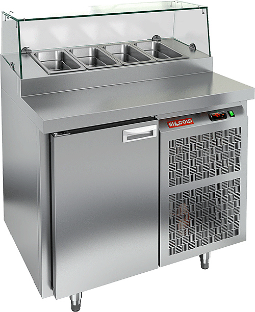 Охлаждаемый стол HICOLD PZ2-1/GN используется на предприятиях общественного питания, торговли и пищевых производствах для кратковременного хранения продуктов питания и напитков, раскатки теста и обработки ингредиентов перед приготовлением пиццы. Модель оснащена распашной дверцей, электронной панелью управления, автоматической оттайкой и регулируемыми ножками. Материал корпуса и столешницы - высококачественная нержавеющая сталь.