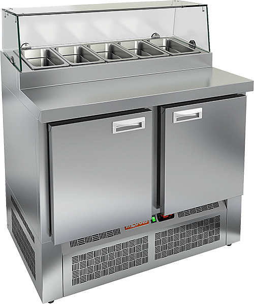 Охлаждаемый стол HICOLD PZE2-11/GN используется на предприятиях общественного питания, торговли и пищевых производствах для кратковременного хранения продуктов питания и напитков, раскатки теста и обработки ингредиентов перед приготовлением пиццы. Модель оснащена распашными дверцами, электронной панелью управления, автоматической оттайкой и регулируемыми ножками. Материал корпуса и столешницы - высококачественная нержавеющая сталь.