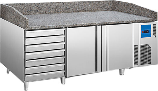 Холодильный стол Koreco SPZ 2610 WN используется на предприятиях общественного питания, торговли и пищевых производствах для раскатки теста и обработки ингредиентов перед приготовлением пиццы, а также для охлаждения и кратковременного хранения различных блюд, напитков и продуктов. Данная модель совместима с холодильной витриной VRX 2000-380 (395II). Материал корпуса - высококачественная нержавеющая сталь AISI 201, материал рабочей поверхности - гранит.