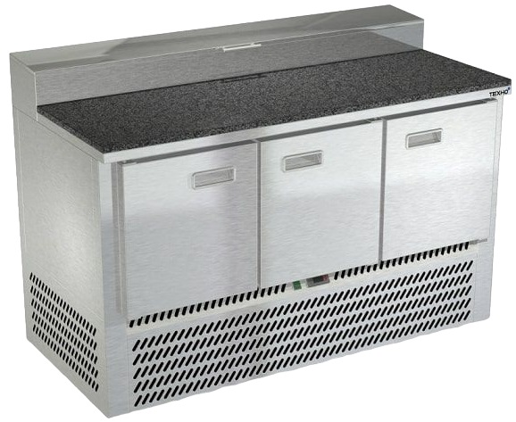 Холодильный стол Техно-ТТ СПН/П-327/08-1907 используется на предприятиях общественного питания, торговли и пищевых производствах для обработки ингредиентов, используемых для приготовления пиццы, а также охлаждения и кратковременного хранения продукции. Каждая секция оснащена сетчатой полкой и направляющими, двери оснащены доводчиками (пр-во Польша). Материал корпуса - нержавеющая сталь AISI 430, материал столешницы - гранитная крошка (толщина 20 мм), материал дна и задней панели - оцинкованная сталь.