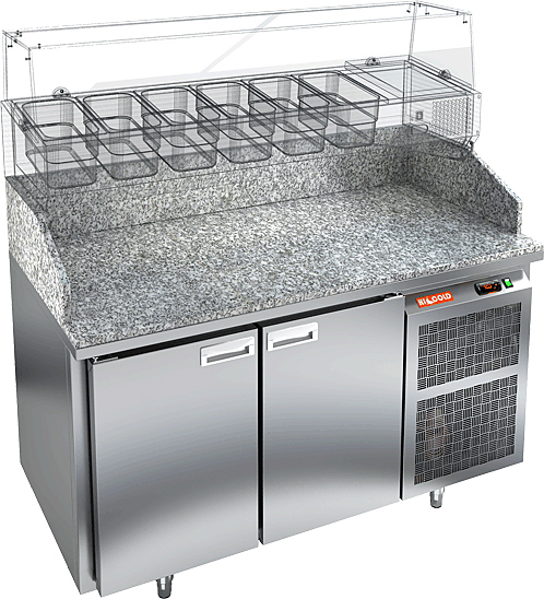 Стол для пиццы HICOLD PZ3-11/SN используется на предприятиях общественного питания, торговли и пищевых производствах для раскатки теста и обработки ингредиентов, используемых для приготовления пиццы, салатов и других блюд, а также для охлаждения и кратковременного хранения скоропортящихся продуктов и напитков. Модель совмещает в себе рабочую поверхность и охлаждаемый объем, что значительно упрощает работу повара, так как все необходимые компоненты всегда находятся под рукой. Материал корпуса - нержавеющая сталь, материал столешницы - гранит.