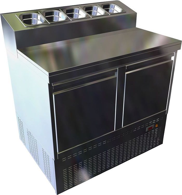 Холодильный стол Gastrolux СОП2-096/2Д/Sр серии Special предназначен для раскатки теста и обработки ингредиентов для приготовления пиццы, охлаждения и кратковременного хранения скоропортящихся продуктов и напитков на предприятиях общественного питания и торговли. Корпус и рабочая поверхность выполнены из нержавеющей стали AISI 430.