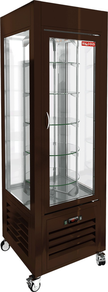 Кондитерская витрина HICOLD VRC 350 R Brown используется на предприятиях общественного питания и торговли для демонстрации, охлаждения и кратковременного хранения кондитерских изделий и десертов. Модель оснащена 5 вращающимися полками, светодиодной подсветкой и колесами со стопорами. Корпус выполнен из окрашенной стали.