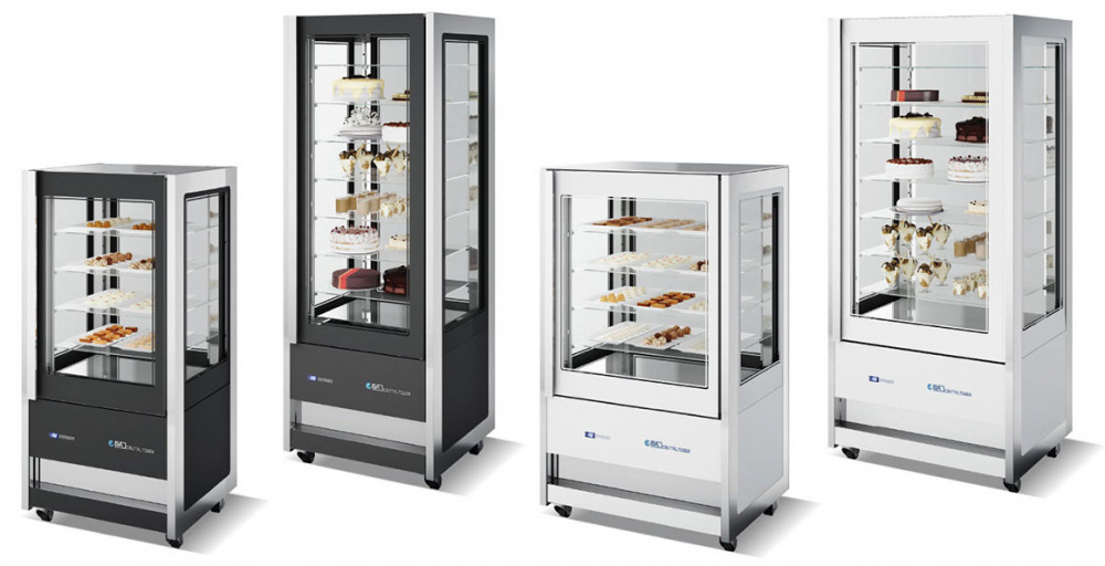 Кондитерский шкаф ISA Cristal Tower 75 H206 RV TB/TN используется на предприятиях общественного питания и торговых точках для демонстрации, охлаждения и краткосрочного хранения кондитерских изделий и десертов, а также для глубокой заморозки продуктов. Материал корпуса - окрашенный металл, изоляция выполнена из пенополиуретана, вспененного углекислотой (без использования озоноразрушающих веществ). Электронная панель управления с системой Touch Pad. Максимальная температура окружающей среды - 30°. Шкаф остеклён с четырех сторон закалённым двойным стеклом и имеет встроенное внутреннее LED освещение.