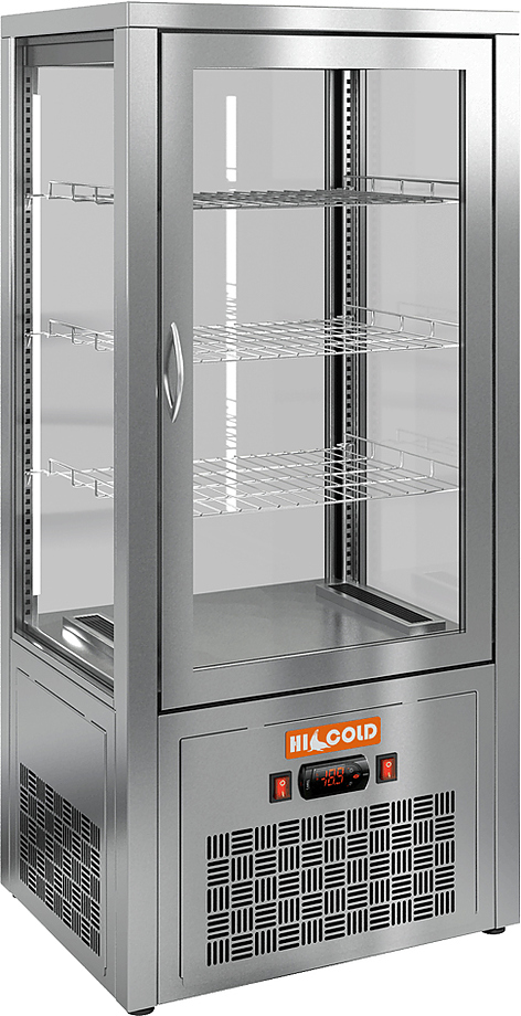 Витрина холодильная HICOLD VRC T 100 предназначается для охлаждения, кратковременного хранения и предпродажной демонстрации салатов, напитков, десертов и прочих скоропортящихся продуктов на предприятиях общественного питания и торговли. Динамическая система охлаждения, электронная система управления. Витрина оснащена 3 вместительными полками и функцией автоматической оттайки. Материал корпуса - нержавеющая сталь, стеклопакет - однокамерный.