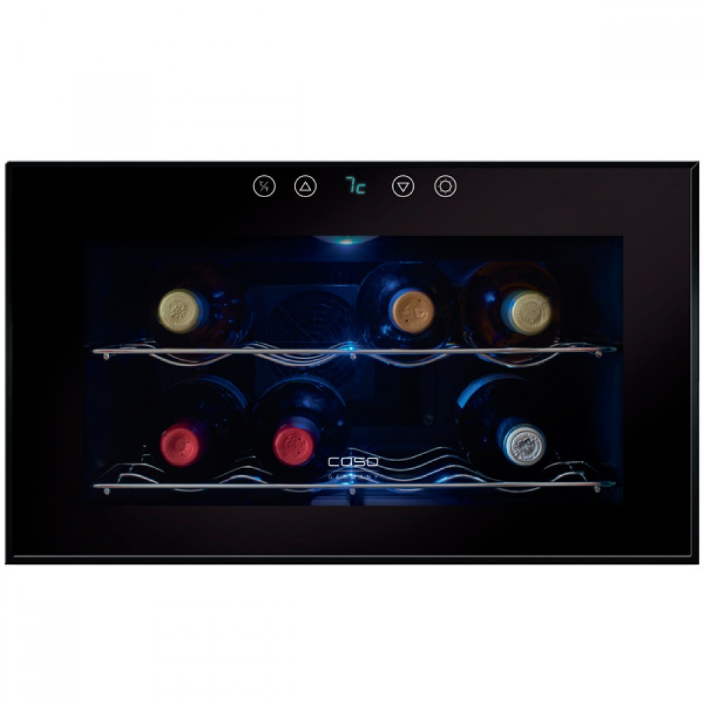 Винный шкаф CASO WineCase 8 предназначен для охлаждения и длительного хранения бутилированного и разливного вина в частных домах, квартирах, отелях и офисах. Модель оснащена сенсорной панелью управления c LED-дисплеем, показывающим текущую температуру, и 2 металлическими сетчатыми полками. Дверная рама и ручка выполнены из нержавеющей стали, дверца - из стекла.