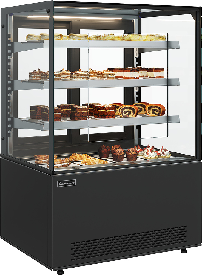 Витрина кондитерская закрытая Carboma KC78-130 VV 1,2-2 COSMO используется для демонстрационной выкладки и кратковременного хранения напитков, хлебобулочных и кондитерских изделий на предприятиях общественного питания, торговли и пищевых производствах. Модель оснащена 3 регулируемыми полками, встроенными ценникодержателями, LED-освещением полок и регулируемыми ножками. Материал корпуса - сталь и пластик, материал термоизоляции - пенополиуретан, материал базовой выкладки - матовое стекло, материал остекления - стеклопакет, материал фронтального остекления - оргстекло..