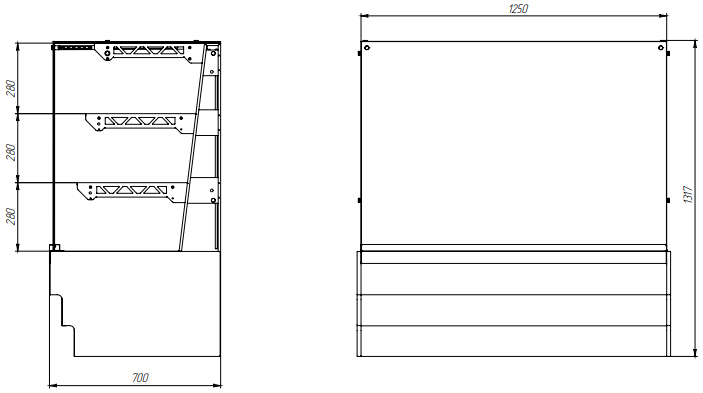 • Доступ к продуктам со стороны рабочего персонала осуществляется с помощью раздвижных створок витрины