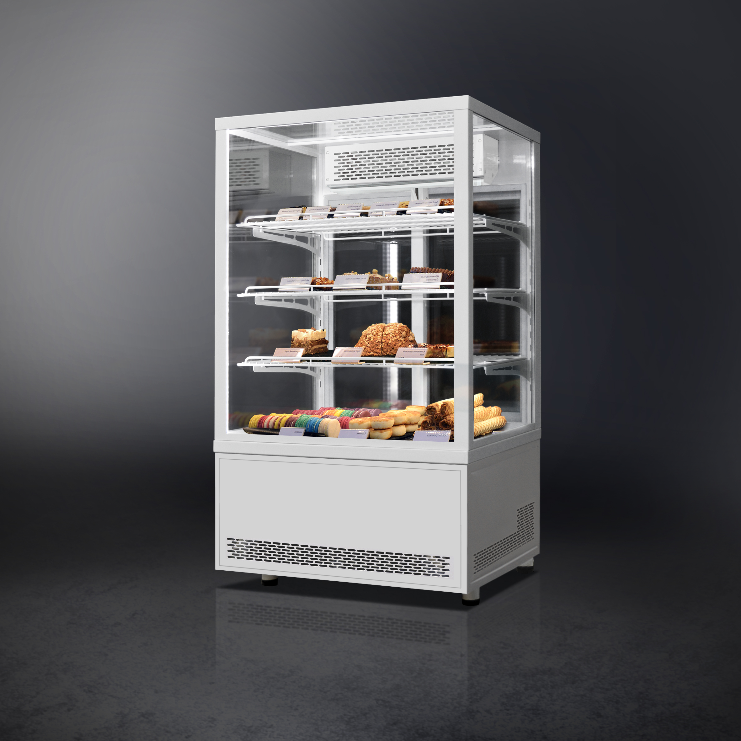 - Прозрачное остекление для оптимального обзора выкладки с 4 сторон