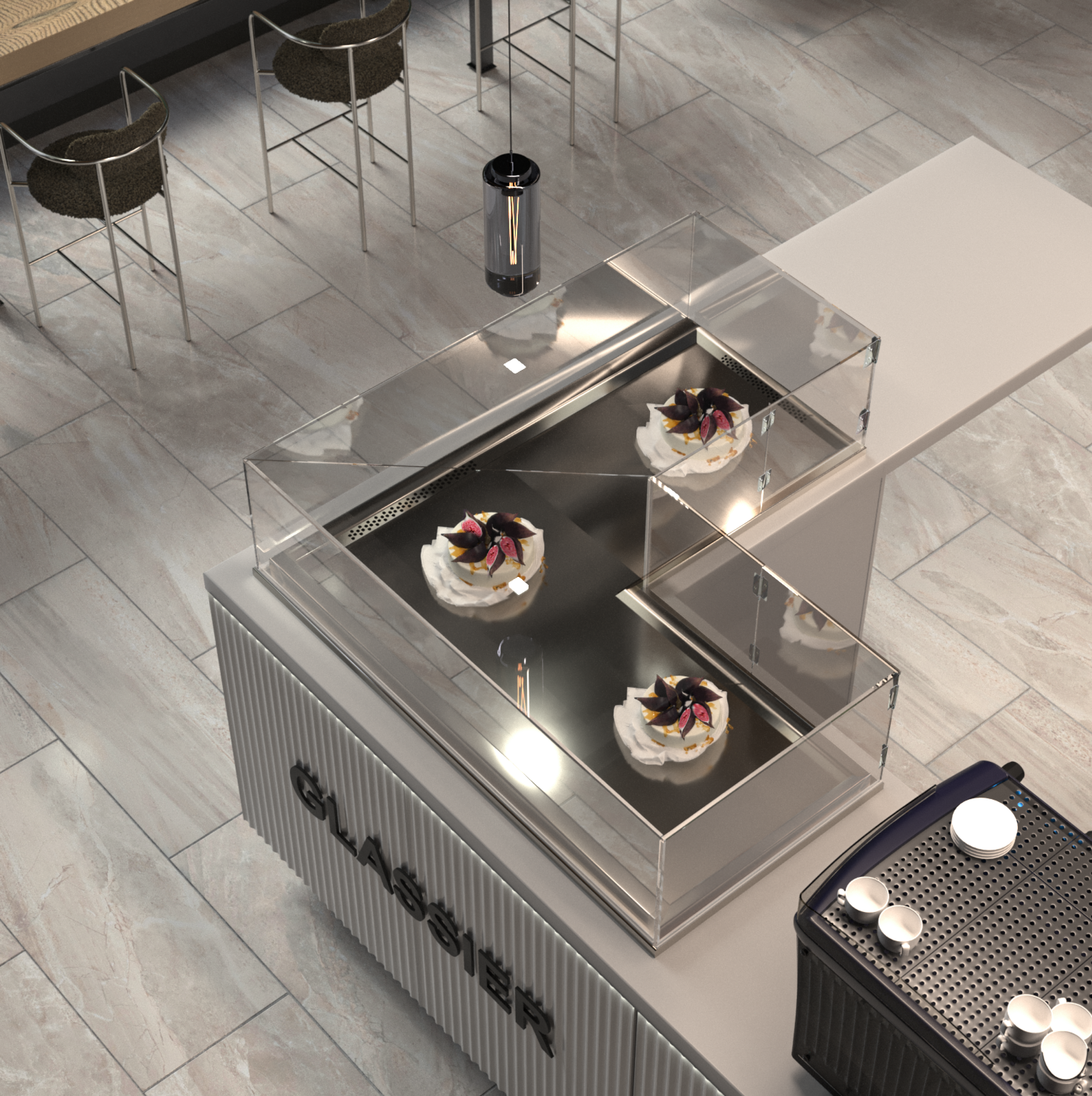 Угловая витрина Finist Glassier LUX GCL-14/7/3 используется на предприятиях общественного питания, торговли и пищевых производствах для демонстрации и кратковременного хранения кондитерских изделий, десертов и сэндвичей. Модель оснащена микропроцессорным блоком управления, автоматической оттайкой, светодиодной подсветкой, цоколем, выдвижными поддонами и дверцами-купе. Материал поддона - зеркальная нержавеющая сталь, материал купола - просветленное стекло, материал фасада - МДФ панели.