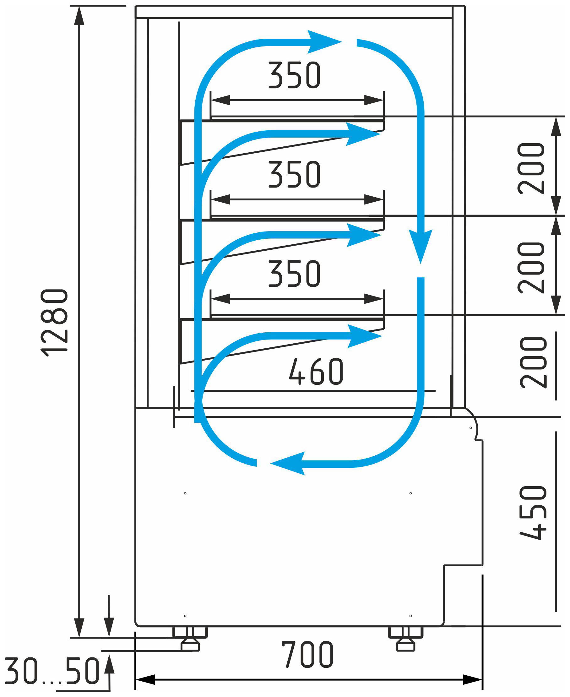 Кондитерская витрина Carboma KC70 VV 1,3-1 Standard используется на предприятиях общественного питания и торговли для демонстрации, охлаждения и кратковременного хранения тортов, десертов из сливок, пирожных и других кондитерских изделий. Модель оснащена 4-х сторонним остеклением со стеклопакетом, 3 охлаждаемыми стеклянными полками и регулируемыми ножками высотой от 30 до 50 мм. Корпус выполнен из окрашенной стали с ППУ-изоляцией, раздвижные задние створки на роликах - из стеклопакета.