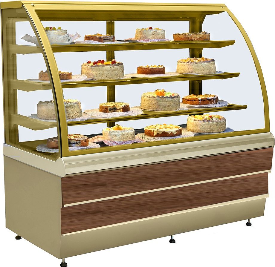 Кондитерская витрина ES-SYSTEM K CARINA 02 1,4 используется на предприятиях общественного питания и торговли для демонстрации, охлаждения и кратковременного хранения для пирожных, бисквитов, бутербродов, закусок и салатов. Лобовое стекло выполнено из гнутого стеклопакета с шелкографией, боковое и задние стекла-двери - из стеклопакета с шелкографией, базовая полка - из водонепроницаемой фанеры.