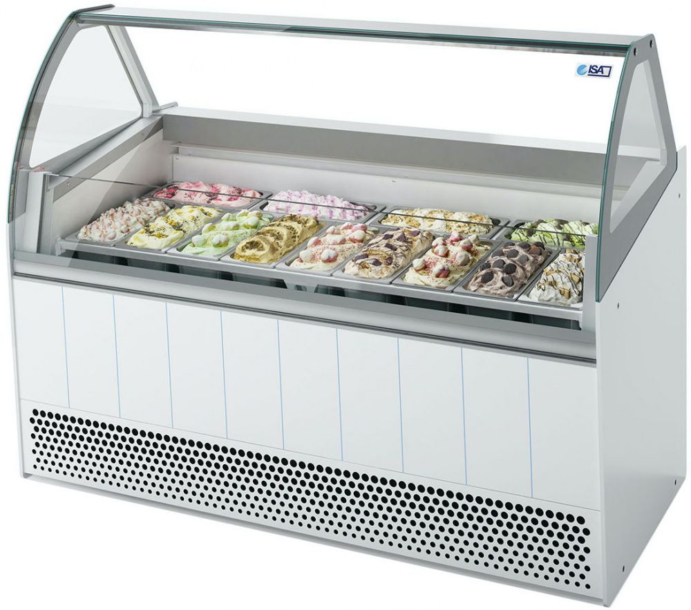 Витрина для мороженого ISA Bermuda View 13 это обновленная версия витрины ISA Bermuda 13. Она идеально подходит для демонстрации и хранения мороженого, сорбета и йогурт-мороженого. Каркас витрины изготовлен из углеродистой стали, окрашенной порошковой краской, внутренняя и внешняя оболочки - из пластифицированной стали. Цельный корпус имеет изоляцию из пенополиуретана, вспененного углекислотой, без использования озоноразрушающих веществ.