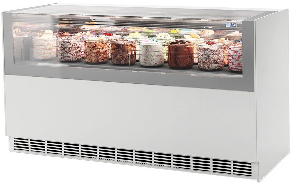 В модельной линейки ISA ONESHOW cуществует также два варианта "сдвоенных" витрин: модификации Base и Stand представляют собой две независимые витрины, установленные на одном подиуме. Благодаря опции DUAL TEMP с расширенным температурным режимом от -20 до +2 °С которая уже установлена в витрину вы сможете существенно расширить ее функциональные возможности и использовать так же в качестве кондитерской витрины, в прохладное время года, когда спрос на мороженое падает.