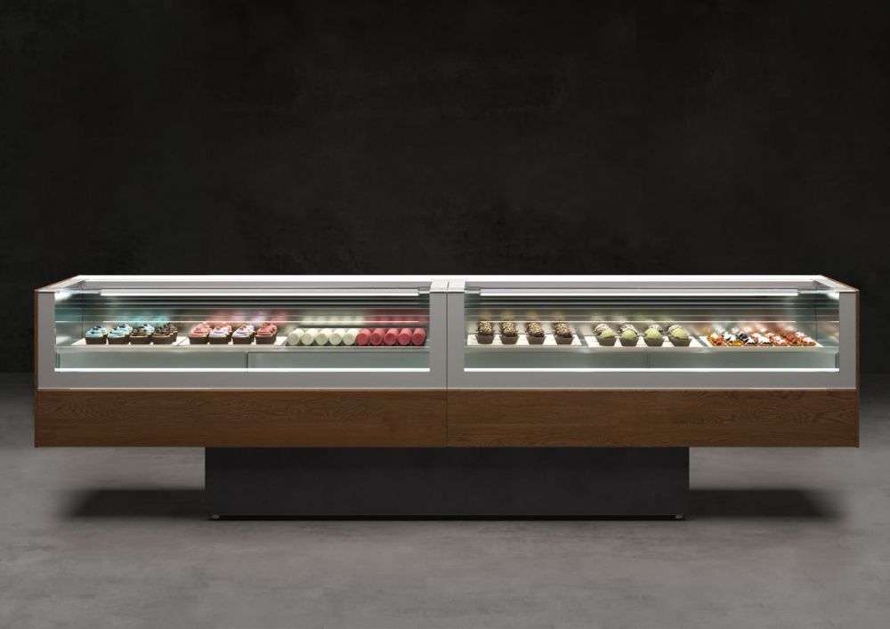Благодаря инновационным технологиям размеры витрины сокращены до минимума: ISA ONESHOW BASE имеет в глубину всего лишь 720 мм. Благодаря этому она идеально подходит для установки в действующих заведениях. Витрина ISA ONESHOW BASE доступна также в версии для мороженого джелато, кондитерских изделий и шоколада.