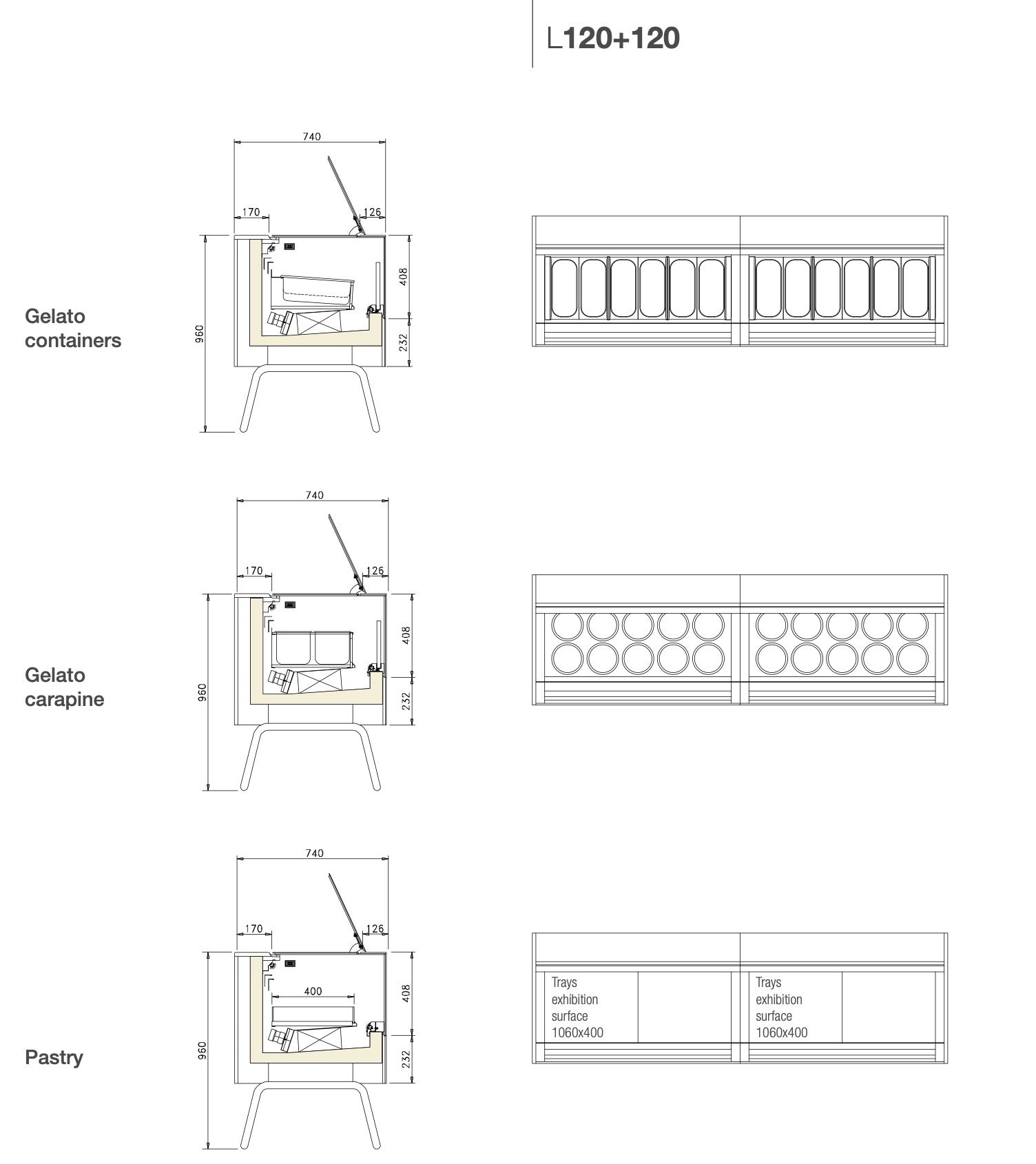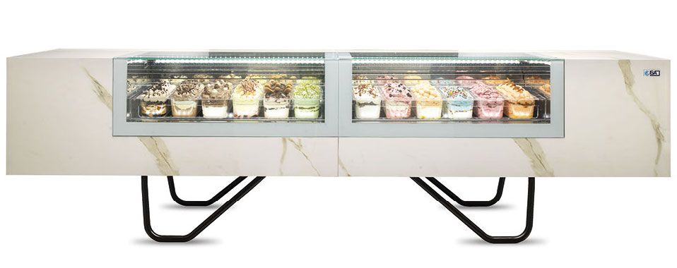 Благодаря инновационным технологиям размеры витрины сокращены до минимума: ISA ONESHOW STAND имеет в глубину всего лишь 720 мм. Благодаря этому она идеально подходит для установки в действующих заведениях. Витрина ISA ONESHOW STAND доступна также в версии для мороженого джелато, кондитерских изделий и шоколада.